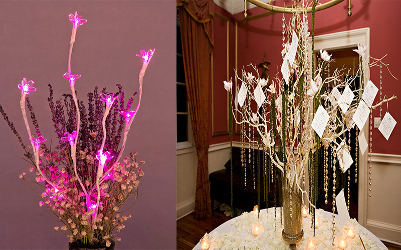 LED branches are one of the most cost effective way of adding a sparkling splendor to your wedding table. You can easily shape up these battery operated plugin LED branches the way you like, as these are made up of easily bendable wires wrapped inside a plastic covering. These are totally harmless so no security issues at all.