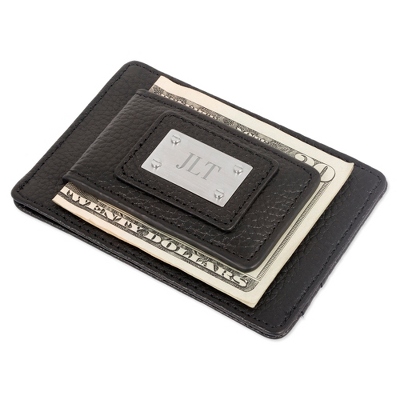 Our personalized Leather Money Clip Wallet Duo combines the best of both worlds: the simplicity of a money clip with the convenience of a wallet. Featuring a magnetic money clip to keep up to 12 bills secure and 3 slots on the back for cards, this black, genuine leather go-to is perfect for the guy on-the-run. Engrave a message, his name or monogram.